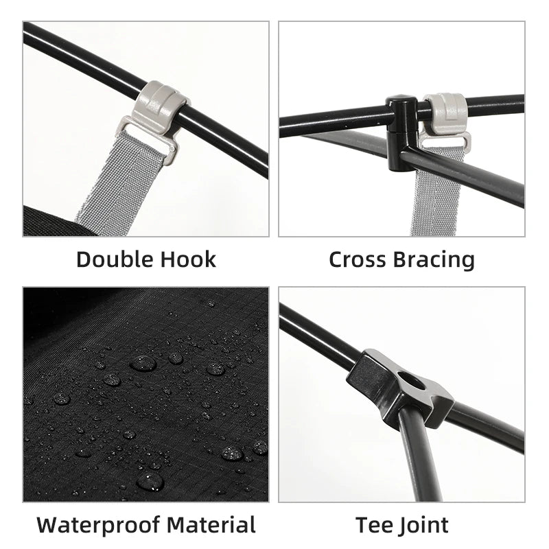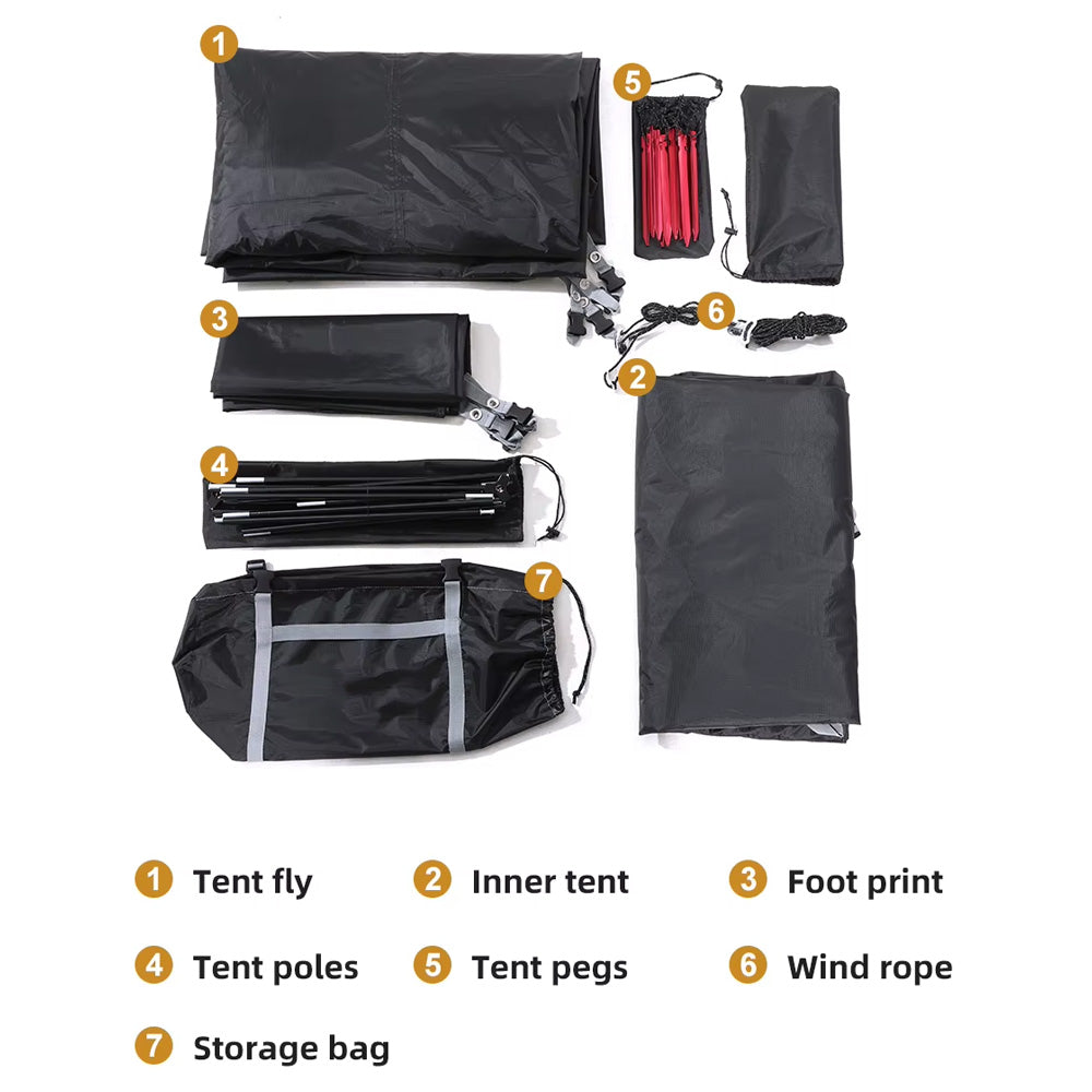 Engineered to handle all four seasons, this tent features a double-layer structure for rainproof protection while maintaining breathability inside. Constructed from high-quality materials like 210T polyester, 20D nylon, and lightweight 7001 aluminum alloy poles, it ensures reliable performance in rain, wind, and snow. Despite its sturdy build, it remains lightweight and compact for easy transport.