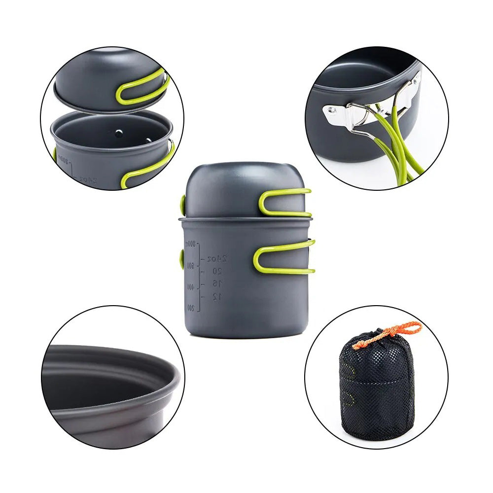 The pots come with measurement marks on the inner walls, helping you measure water or ingredients accurately. The included mesh bag keeps everything together, making it easy to carry and store.